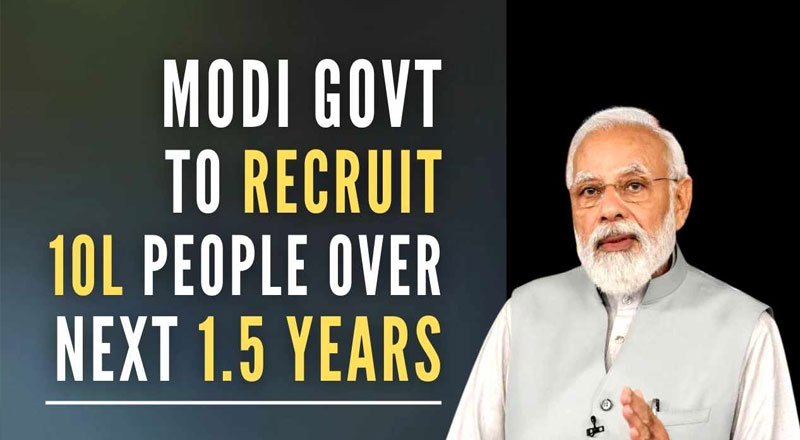 Prime Minister Narendra Modi has directed various government departments and ministries to recruit 10 lakh people in a "mission mode" in the 1.5 year...