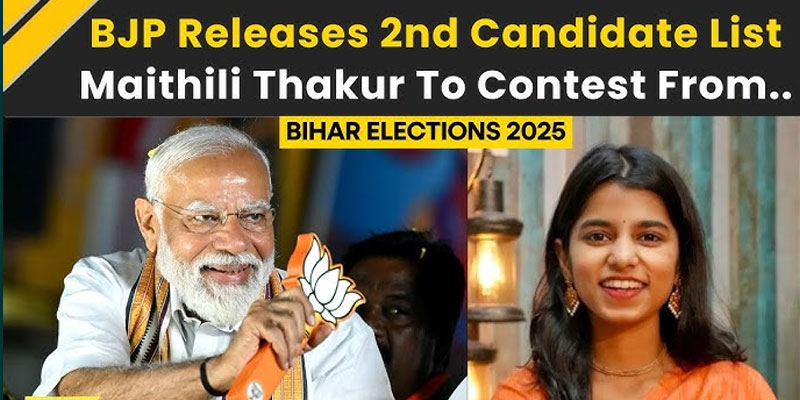 The Bharatiya Janata Party (BJP) on Wednesday released its second list of 12 candidates for the upcoming Bihar Assembly elections. Among the notable names is folk singer Maithili Thakur, who will contest from the Alinagar constituency. The party has also given a ticket to former IPS Anand Mishra from Buxar.